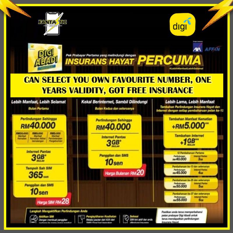 Digi prepaid super long life 1 year validity rm 38 do now. Celcom, hotlink, digi,u mobile and tunetalk also have revised their prepaid plan. The digi prepaid sim card is called digi prepaid live and is sold for 8 myr. Digi prepaid super long life 1 year validity rm 38 do now youtube. Digi together with axa affin life insurance has introduced the digi abadi prepaid plan that provides data and free life insurance cover.