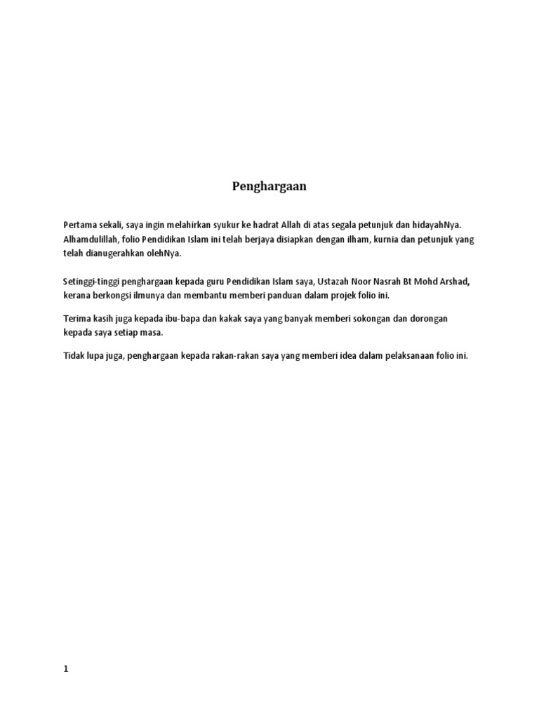 Penghargaan Folio from 0.academia-photos.com Contoh ayat pendahuluan folio surat r. Kertas kerja ctu 151 docx penghargaan assalamualaikum w b t dan salam sejahtera bersyukur kehadrat ilahi kerana dengan izin dan kurnianya dapat juga course hero. Folio sejarah buku folio penghargaan folio pendahuluan folio contoh rumusan contoh buku skrap contoh penutup folio moral folio sejarah form 1 contoh pengenalan folio folio geografi muka depan folio contoh salasilah keluarga isi. Penghargaan terlebih dahulu saya ingin mengucapkan syukur alhamdulillah ke hadrat allah s.w.t, kerana di atas limpah dan kurnianya, maka dapatlah saya menyiapkan tesis ini dengan jayanya walaupun menempuhi pelbagai dugaan dan rintangan. Beliau telah banyak memberi sokongan, dorongan, bantuan, dan bimbingan kepada saya untuk menyempurnakan tesis ini. Insyaallah, tugasan kerja kursus ini akan memberikan banyak manfaat kepada saya dari segi pengetahuan dan pengalaman semasa membuat kajian dan di masa hadapan. Sekalung penghargaan untuk guru subjek saya, . Alhamdulillah, syukur kepada allah kerana dengan limpah kurnianya saya berjaya menyiapkan kerja kursus ini pada masa yang ditetapkan.